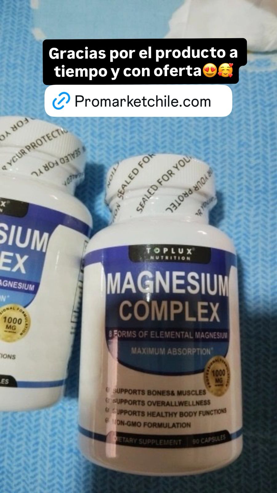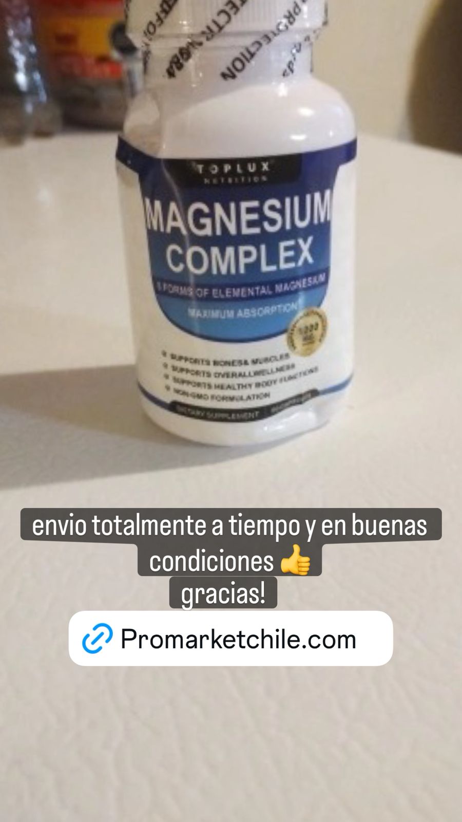 Magnesio Complex 1000 mg te ayuda a recuperar energía, fortalecer huesos y músculos, y mejorar tu descanso de forma natural y efectiva desde casa. Ideal para quienes buscan un suplemento multifuente con máxima absorción, sin complicaciones ni efectos secundarios, perfecto para un estilo de vida activo en Chile.